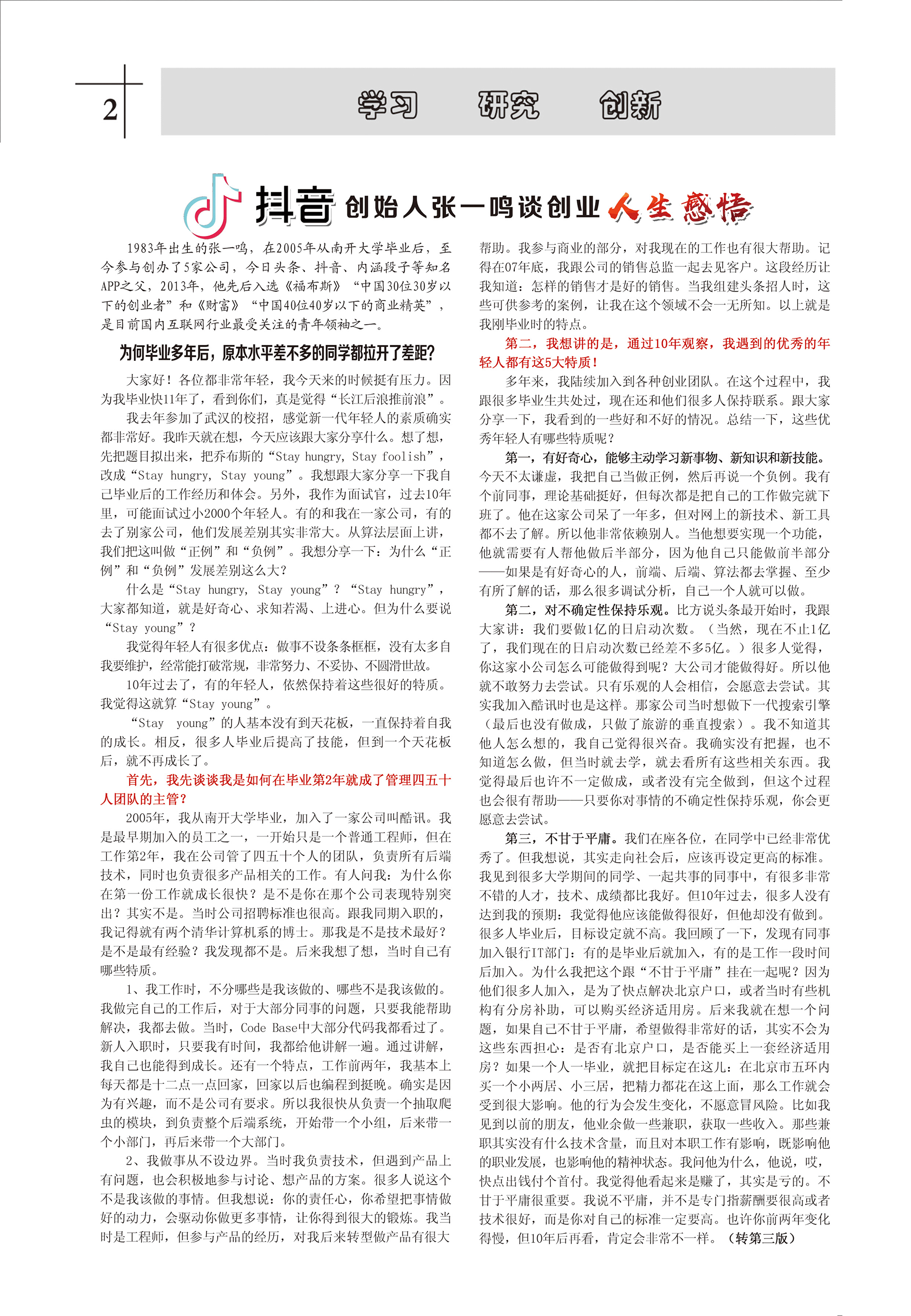 1983年出生的張一鳴,在2005年從南開大學畢業(yè)后,至今參與創(chuàng)辦了5家公司,今日頭條、抖音、內(nèi)涵段子等知名APP之父