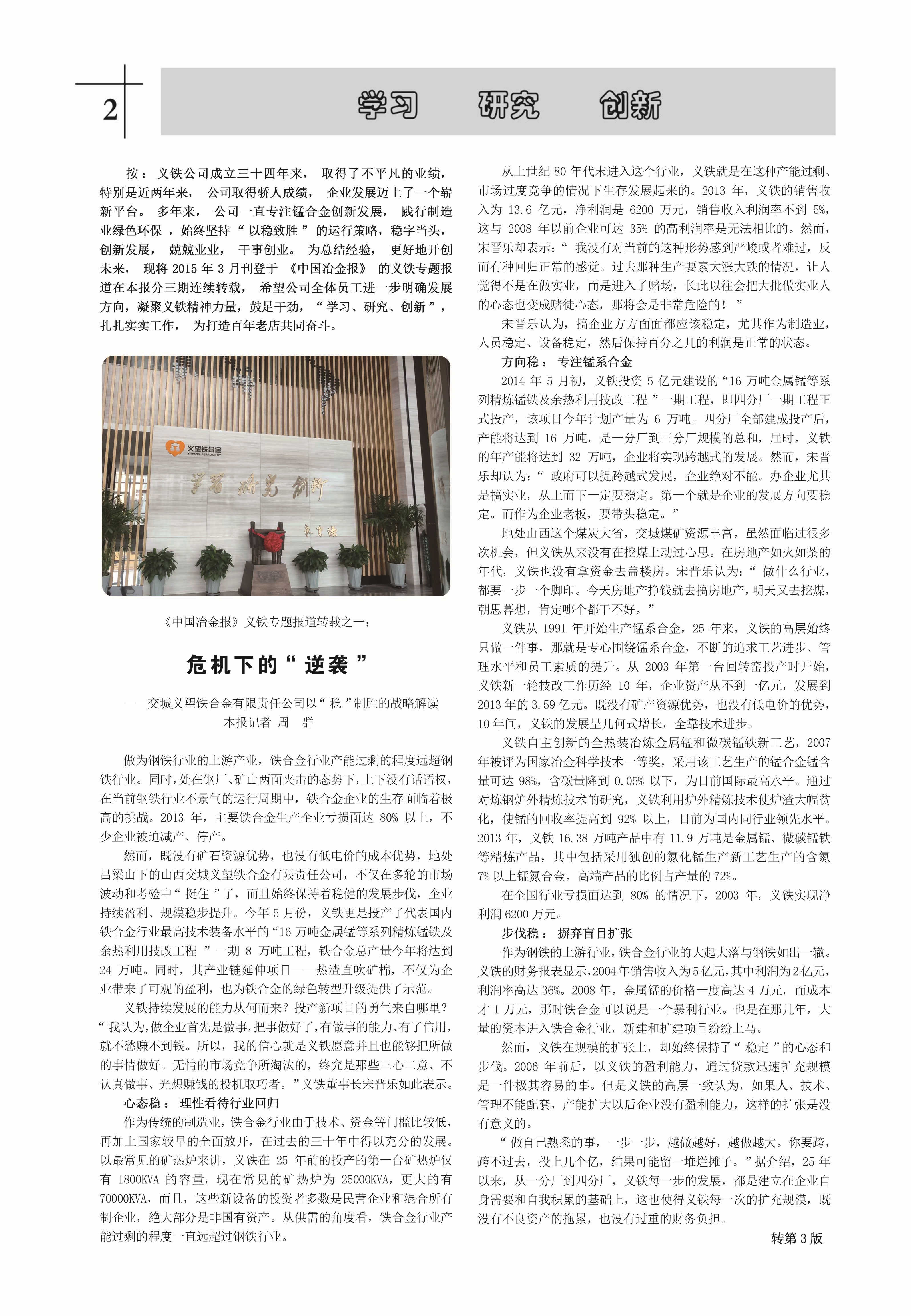集鐵合金、礦(巖)棉建材產(chǎn)品生產(chǎn)銷售于一體的現(xiàn)代循環(huán)經(jīng)濟(jì)樣板企業(yè)